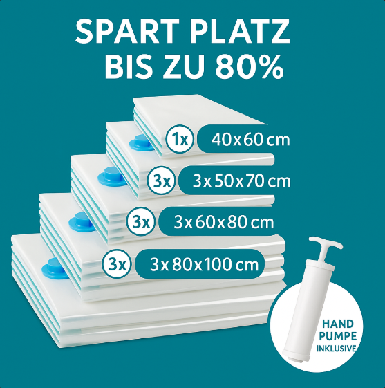 Ich hätte nicht gedacht, dass die Beutel so einen Unterschied machen. Mein Koffer ist jetzt deutlich übersichtlicher und ich bekomme fast doppelt so viel Kleidung rein. Auch zu Hause im Schrank sieht alles endlich ordentlich aus und nichts riecht muffig. Die Handpumpe ist super praktisch für unterwegs. Würde ich jederzeit wieder kaufen